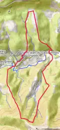 La superficie cadastrale de la commune publiée par l’Insee, qui sert de références dans toutes les statistiques, est de 7,45 km2[8],[Note 2]. La superficie géographique, issue de la BD Topo, composante du Référentiel à grande échelle produit par l'IGN, est quant à elle de 7,63 km2[7]. Son relief est particulièrement escarpé puisque la dénivelée maximale atteint 1 026 mètres. L'altitude du territoire varie entre 587 m et 1 613 m[11].