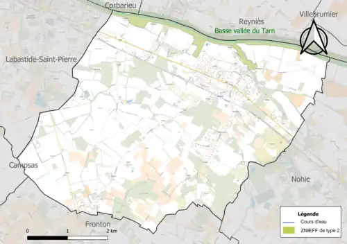 Une ZNIEFF de type 2[Note 3] est recensée sur la commune[16] : la « basse vallée du Tarn » (3 623 ha), couvrant 49 communes dont huit dans la Haute-Garonne, 20 dans le Tarn et 21 dans le Tarn-et-Garonne[17].