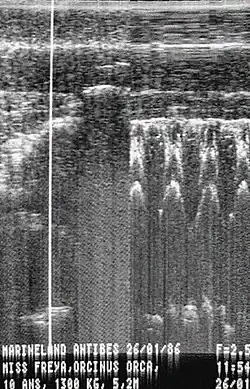 Les orques utilisent leur vitesse et leur système d'écholocation dans la chasse. Il n'est pas rare que, tout comme les dauphins, elles fassent éclater par des chocs certains organes de leur proie ou adversaire — comme le foie, particulièrement visé[39].