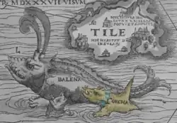 Représentation du XVIesiècle de l'orque reconnaissable avec sa nageoire dorsale sur la Carta Marina.