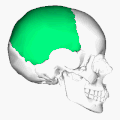 Face interne de l'os pariétal (d), face externe de l'os pariétal (d), bord occipital de l'os pariétal (d), bord squameux de l'os pariétal (d), bord sagittal de l'os pariétal (d), bord frontal de l'os pariétal (d), angle frontal de l'os pariétal (d), angle occipital de l'os pariétal (d), angle sphénoïdal de l'os pariétal (d), angle mastoïdien de l'os pariétal (d), foramen pariétal