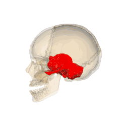 Complètement à l'arrière la mastoïde séparée par un vestige de la suture pétro-squameuse en une partie squameuse dans son quart antérieur et une partie pétreuse dans ses trois-quarts postérieurs.