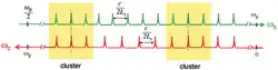 Cette double condition doit également être compatible avec l'accord phase et la conservation de l'énergie. Un DROPO est donc un système surcontraint, ce qui rend l'oscillation possible que pour un nombre restreint de fréquences signal et complémentaire, appelées coïncidences. Ces coïncidences peuvent être partielles, ce qui donne lieu à des « paquets » de modes voisins oscillants, appelés clusters. Lorsque la longueur de la cavité fluctue légèrement (5 nm peuvent suffire), les peignes de fréquence signal et complémentaire se dilatent, et les coïncidences se retrouvent sur d'autres paires de modes. Ces sauts de modes peuvent se produire entre modes voisins ou d'un cluster à l'autre, ce qui entraîne de fortes instabilités de fréquence et d'intensité, en particulier lorsqu'il s'agit d'accorder l'OPO.