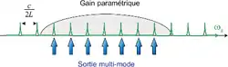 où g est le gain paramétrique, proportionnel à la non-linéarité du milieu et à l'amplitude de l'onde de pompe, et .