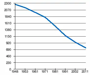 | 2 262 | 2 147 | 1 976 | 1 816 | 1 500 | 1 181 | 944[2] | 752[1] |