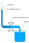 Deux solutions, une de solvant pur, et une de solvant pur + soluté (un sel par exemple) sont séparées par une membrane semi-perméable (laisse passer l'eau, mais pas le soluté). La pression, en raison du phénomène d'osmose, sera plus élevée du côté de la solution ne contenant pas de soluté. Cette différence de pression se mesure en comparant la montée de l'eau dans des capillaires placés au sommet de chacun des deux compartiments (la solution monte plus haut là où la pression est la plus élevée). Cette différence de pression donne accès à la concentration de la solution contenant le soluté.