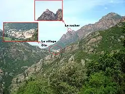 - ↑ La crête d'Andatone se situe au nord du Capu d'Ota sommet dominant le village