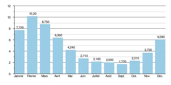 Le module (débit moyen inter annuel) de la rivière à Gy-les-Nonains est de 4,8 m3/s.