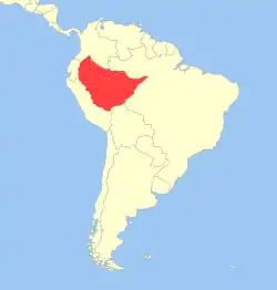 Tout le bassin de la haute Amazone, soit le nord de la Bolivie, l’est du Pérou, l’est de l’Équateur, le sud de la Colombie, le nord et l’ouest du Brésil. Il est présent dans un triangle dessiné au nord par le rio Japurá-Caquetá, à l’est par le rio Madeira et à l’ouest les rios Pastaza et Ucayali. Sa limite sud se situe à la frontière de l’État d’Acre (Brésil) et du Pérou.