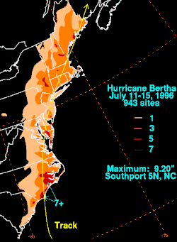 9. 1 2 3 4 5 6 7 (en) Bureau de Wilmington, NC, « Hurricane Bertha : July 12, 1996 », National Weather Service, (consulté le ).