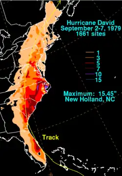 - (en) « Hurricane David - August 29-September 7, 1979 (Précipitation avec David) », Weather Prediction Center.