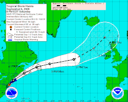 - 1 2 (en) Knabb, « Tropical Storm HANNA Discussion no 38 », National Hurricane Center, 6 septembre 2008 à 8 tu (consulté le )