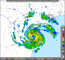 Hanna à seulement quelques heures de toucher la côte texane le . | ||||||||
