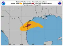 - ↑ (en) Beven, « Tropical Storm Hanna Tropical Cyclone Update », National Hurricane Center, (consulté le ).