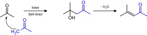 L'oxyde de mésityle est préparé par une crotonisation de l'acétone pour obtenir le 4-hydroxy-4-méthylpentan-2-one (diacétone alcool) qui, facilement déshydraté, fournit le produit[6]