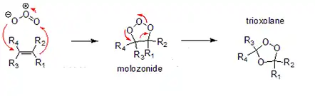 les ozonures organiques (1,2,4-trioxolane) sont issus du réarrangement de molozonures (1,2,3-trioxolane) formés par une réaction d'addition entre l'ozone et un alcène. Les molozonures sont des cousins encore plus explosifs des peroxydes organiques. Ils sont instables et se convertissent rapidement en l'ozonure organique correspondant. Ces derniers apparaissent généralement comme des liquides huileux, très odorants et se décomposent rapidement en présence d'eau en composés carbonyl : aldéhydes, cétones, peroxydes.