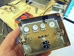 Une pédale d'effet est un appareil électronique[2] constitué :