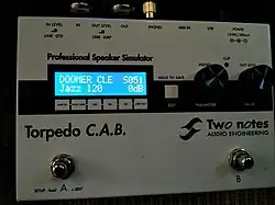 Les pédales de simulation de cabinet imitent un haut-parleur pour ampli guitare. Cet effet s'utilise en complément d'un amplificateur ou d'une simulation d'ampli, et permettent de se passer de haut parleur. À l'origine de simples filtres analogiques, certaines incluent des lecteurs de réponse impulsionnelle (impulse response) permettant de reproduire fidèlement un baffle d'ampli.