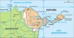 1. Punta Almina : L'extrémité orientale de la péninsule, où se trouve le phare de Punta Almina, construit en 1855 et reconstruit en 1919. Ce phare, situé à 148 mètres au-dessus du niveau de la mer, a une portée de 22 milles nautiques (environ 41 km)