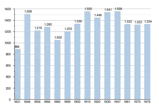- Sources : INS, Rem. : 1831 jusqu'en 1970 = recensements, 1976 = nombre d'habitants au 31 décembre.