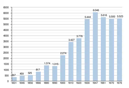 Sources: INS, Rem.: 1831 jusqu'en 1970 = recensements, 1976 = nombre d'habitants au 31 décembre.