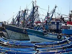 La flotte contient plus de 3 000 navires et une large infrastructure portuaire. La pêche maritime génère une production annuelle de plus d’un million de tonnes, place le Maroc au premier rang des producteurs africains et au 25e à l’échelle mondiale. Cette production est assurée à hauteur de 15 % par une flotte constituée de 450 navires hauturiers, 85 % par 2550 bateaux de pêche côtière et 20 000 barques artisanales et 2 % par d’autres activités.