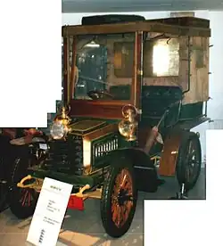 Le premier modèle commercialisé en 1898[5] avait, de manière innovante, un moteur monocylindre de 3 ch, monté sous le siège du conducteur, en traction avant, avec « transmission par engrenages et courroie, à essieu moteur d'avant qu'un levier permet de déplacer pour embrayer et débrayer en tendant ou détendant la courroie, à roues d'arrière directrices[6] ».
