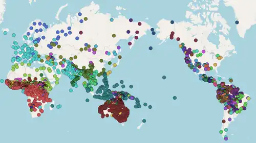 Carte des langues répertoriées sur PHOIBLE 2.0.