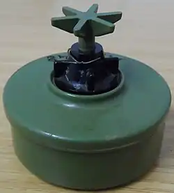 La mine est armée en retirant une goupille qui bloque la course vers le bas du piston à six pétales. Après avoir retiré la goupille d’armement, une pression suffisante sur le piston (par le pied de la victime) le force vers le bas dans le corps principal de la fusée, ce qui enflamme une composition pyrotechnique sensible au frottement. La composition pyrotechnique en feu se répercute sur le détonateur qui se déclenche, déclenchant une petite charge d’appoint RDX qui à son tour fait exploser la charge explosive principale de TNT.