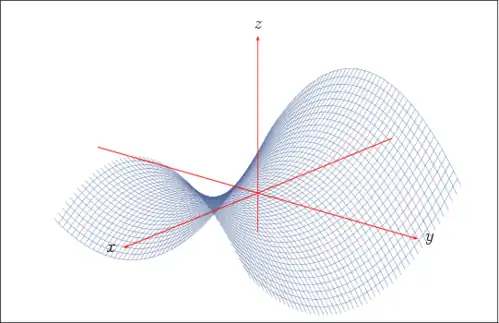 Paraboloïde hyperbolique dessiné avec la bibliothèque pst-plot3d de PSTricks