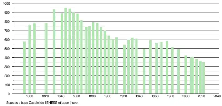 351 hab. (2022 en évolution de −6,4 % par rapport à 2016)