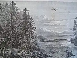 Paysage et flore jurassique reconstitués (dessin par Riou,1872).
