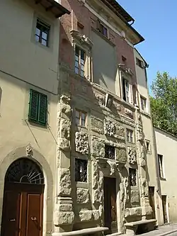 Avant d'habiter ce palais, Zuccari a demeuré à partir de 1577, dans la vieille maison où Andrea del Sarto a vécu cinquante ans auparavant, située à l'angle de la Via Gino Capponi.