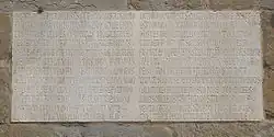 Une autre plaque, située près de l'angle du bâtiment, près de la tour, également peu lisible, est connue par ses transcriptions, qui indique les précautions nécessaires contre les risques d'incendie, prévenant également les cas de malveillance, de « tout degré et condition », à « la stricte discrétion de leurs magistrats ».