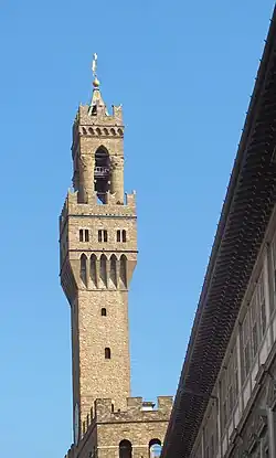 Certains châteaux de la Toscane copieront cette tour-beffroi (à une échelle moindre) pour agrémenter leur palais (exemple : castello di Montegufoni près de Montespertoli sur la frazione de Montagnana) et ainsi étaler leur allégeance à la république de Florence.