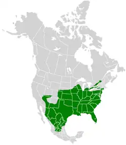 Il est présent dans le sud du Canada dans la vallée du fleuve Saint-Laurent et le sud de l'Ontario et dans tout l'est, le centre et le sud-ouest des USA (il est absent du nord-ouest) Il est aussi présent dans le nord du Mexique[2].