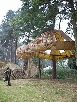 Les parachutes utilisés sont de type hémisphériques (ronds) car ils ne sont pas ou peu directionnels à l'ouverture. Étant donné la proximité des parachutes lors de la sortie, il est souhaitable qu'ils se déplacent tous initialement dans le même sens (celui du vent) afin d'éviter des accrochages.