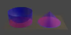 - est le « bol », c'est un cylindre de rayon 1 et de hauteur 1, auquel on a soustrait une demi-sphère de rayon 1, concentrique à la face supérieure.