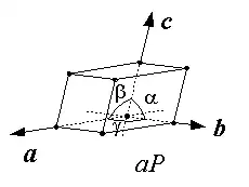 | monoclinique | a, b, c, β, α = γ = 90° |