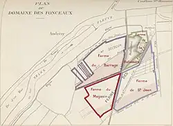 En 1902, la ville de Paris acquiert le domaine de Picquenard qui s'étend sur 210 hectares dans le sud de la commune d'Achères et le nord de celle de Poissy[9], et dispose ainsi de 1200 hectares pour ses épandages, situés principalement dans la commune d'Achères, secondairement dans celles de Saint-Germain-en-Laye, Poissy, La Frette-sur-Seine, Herblay et Conflans-Sainte-Honorine[10]. Il comprenait alors cinq fermes, soit d'est en ouest, la ferme de Fromainville, la ferme des Noyers, le ferme de Garenne, la ferme des Fonceaux et celle de Picquenard.