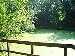Autre attrait du site, un grand groupe de peupliers grisards (Populus canescens) jouent les préludes près de l’entrée de la rue Bassem. Du ponton dominant le marais, on peut observer des grenouilles, des tortues de Floride et différentes espèces de canards.