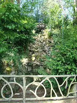 Cascade du parc du Thabor avec des étais, en vue de sa restauration.