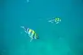 raie pastenague à points bleus et raie manta ; poisson clown rouge et poisson clown à trois bandes ; bourse écriture ; poisson-grenouille géant et poisson-grenouille peint ; poisson-ballon griffonné et poisson-ballon à taches noires ; poisson-cocher ; sélar à bande dorée et sélar queue jaune ; poisson-trompette ; baliste titan ; poisson-papillon à huit bandes ; ptérois zèbre et rascasse volante (pterois volitans) ; poisson porc-épic ; mérou patate ; pégase ; murène léopard, murène à tête jaune et murène géante ; labre échiquier ; poisson coffre jaune ; platax à longues nageoires ; Poisson-ange empereur ; faux poisson pierre (scorpaenopsis diabolus ou poisson-scorpion diable) et poisson-scorpion à houppe (scorpaenopsis oxycephale) ; barracuda queue jaune (sphyraena flavicauda) et barracuda à nageoires noires (sphyraena qenie) ; requin chien de mer de corail , requin zèbre et requin épée et requin-baleine[8] ; zangle cornu ...