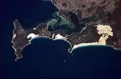 Le village de Coffin Bay est situé à l'entrée du parc national. Le parc forme une longue presqu'île avec une baie abritée, des dunes, des marais, un long chapelet d'îles, des rochers dans la mer, des falaises blanches et des plages de sable blanc.