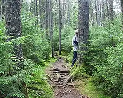 Les forêts de feuillus ne représentent que 5 % du couvert forestier. Les essences feuillues les plus abondantes sont le bouleau jaune et le bouleau à papier, mais on y trouve aussi de l'érable à sucre, de l'érable rouge et du hêtre à grandes feuilles (Fagus grandifolia). Les sous-bois sont peuplés de claytonie de Caroline (Claytonia caroliniana) et d'érythrone d'Amérique (Erythronium americanum). Les peuplements purs de conifères sont rares dans le parc et ils sont représentés principalement par l'épinette rouge et le sapin baumier[23]. Les quelques tourbières du parcs sont couvertes d'un tapis de sphaigne (Sphagnum sp.) sur lequel poussent des épinettes noires (Picea mariana) et des mélèzes laricins (Larix laricina). On y recense trois genres de plantes carnivores : la sarracénie pourpre (Sarracenia purpurea), des droséras (Drosera sp.) et des utriculaires (Utricularia sp.)[24].