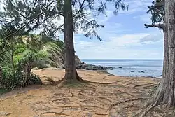 - des arbres : filao (bois de fer) ; Heliotropium foertherianum (veloutier à la Réunion et à l'île Maurice) ; arbre de pongolote ou Karanja ; petit arbre Thespesia populnea (porcher à la Réunion et Miro en Polynésie Française) ; arbre fruitier badamier Terminalia catappa...