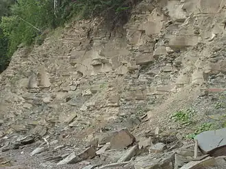 - ↑ Parc national de Miguasha, « La biostratigraphie », sur De l'eau à la terre, (consulté le ).