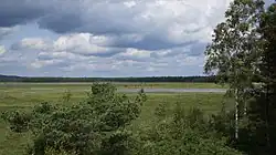 Sur les terrains secs se développe une forêt de pins caractéristique de la taïga[S 7]. Le sol est souvent constitué de sable ce qui donne des sous-bois secs, avec de la bruyère et de l'airelle rouge (Vaccinium vitis-idaea), ainsi que des tapis de pleurozie dorée (Pleurozium schreberi)[S 7]. Certaines zones ont cependant un terrain un peu plus humide, en particulier dans la zone de transition avec les tourbières, permettant le développement de myrtille (Vaccinium myrtillus), de trientale d'Europe (Trientalis europaea) et de maïanthème à deux feuilles (Maianthemum bifolium)[S 7].