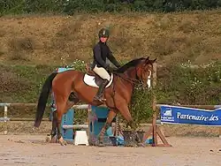 - ↑ Tétière : pièce de cuir du bridon passant derrière les oreilles du cheval au niveau de la nuque