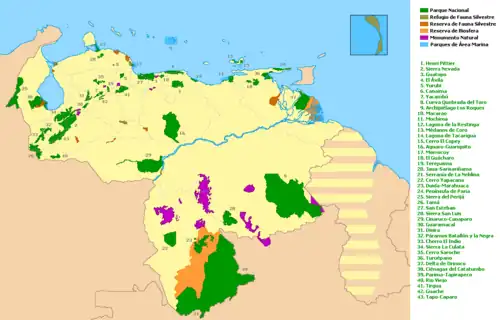 Les parcs nationaux du Venezuela, qui sont au nombre de 43, sont gérés par l'Institut national des parcs (es) (INPARQUES).